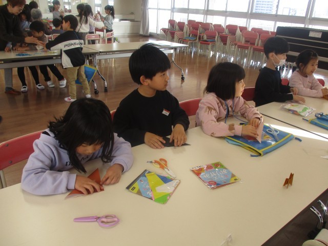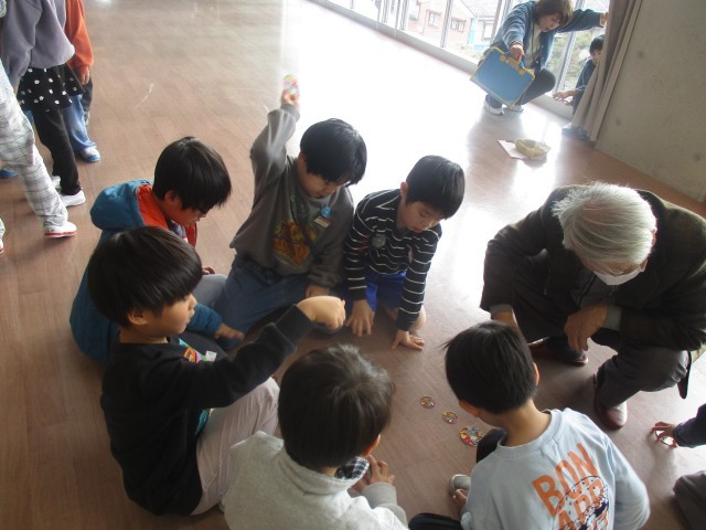 生活科の授業では、地域の方々を講師としてお招きし、昔の遊びを教えてもらいました。今日は、「こま」「おはじき」「あやとり」「めんこ」「おりがみ」の5つから、気になる遊びやもっと上手になりたい遊びを選び、地域の方々と一緒に楽しみました。これまで上手に回せなかったこまが回せるようになったり、初めて遊ぶめんこの楽しさを知ったりなど、どの遊びにも没頭して楽しむ子供たちの様子が見られました。教えてくださった講師の皆様、ありがとうございました。