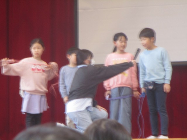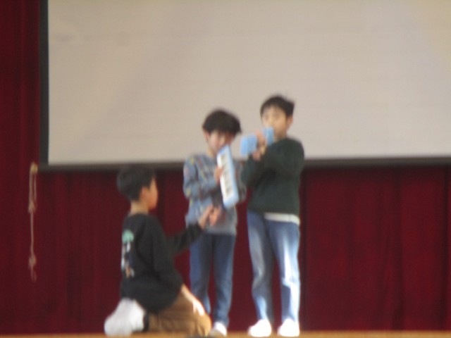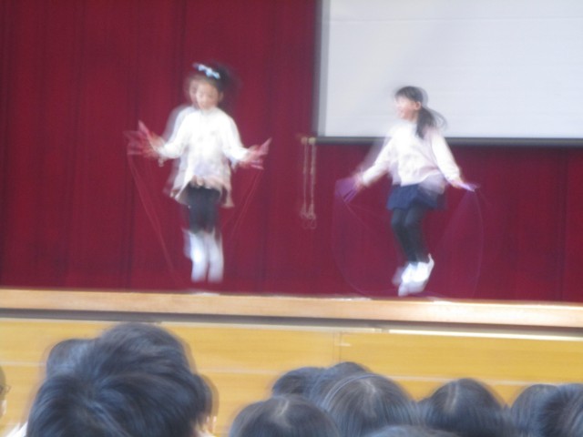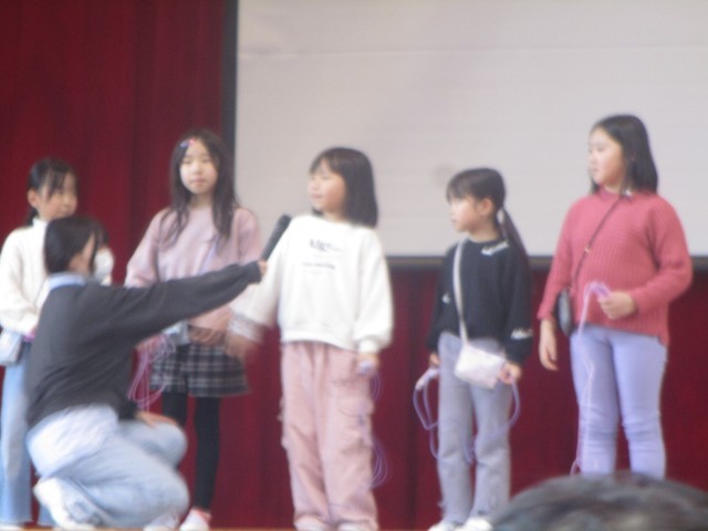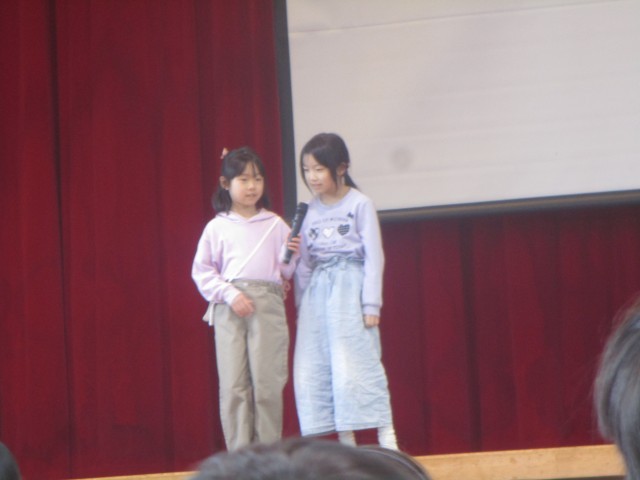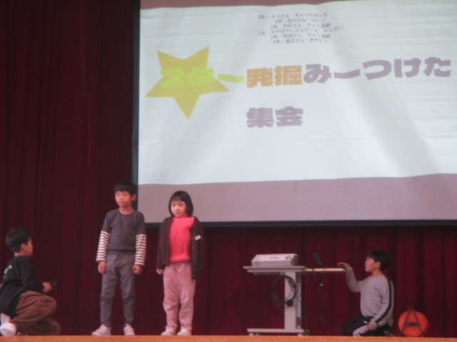自分の特技や頑張りを全校に見てもらおうと、「我こそは」とたくさんの子供たちがステージに上がりました。2年生の出場者も多く、縄跳び、絵画、側転、鍵盤ハーモニカ、ピアノ、鉄棒やあやとり等で発表をしました。どの発表にも大きな拍手や「すごい」という感嘆の声が聞かれ、発表した子供たちも頑張りを認められる場になっていました。