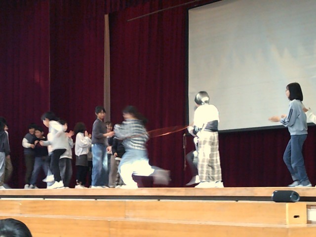 集会委員会主催の集会で、2学期から準備してきた八の字跳び・ダンスを披露することができました。
