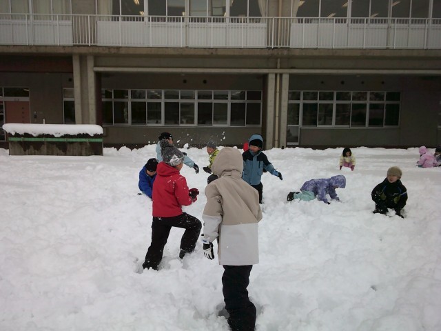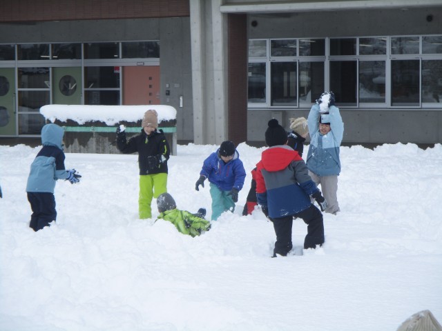 2年生で雪遊びをしました。雪合戦をしたり、雪の大玉をつくったりと、思い思いに新雪を楽しみました。