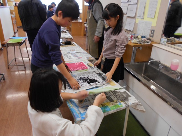 特別講師の先生からのアドバイスや今までの版画の刷りの体験を生かして、丁寧にインクをつけて刷りました。
