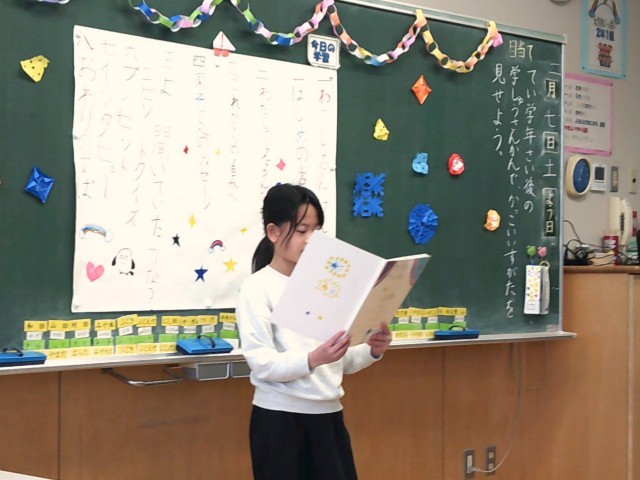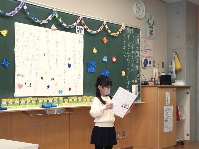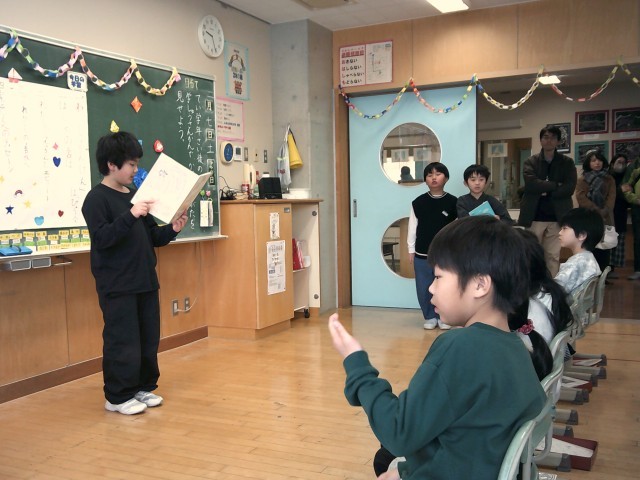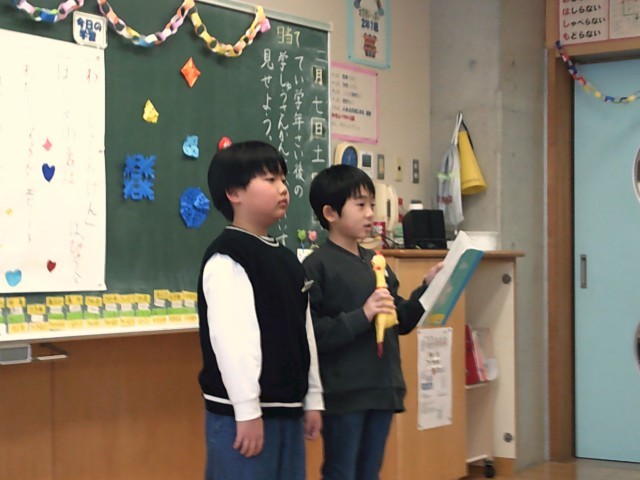 今日は、低学年最後の学習参観ということで、計画、準備等のほとんどを子供たちですすめてきました。子供たちは自分の成長調べや友達との話合いから、家の人と自分の成長の関わりを考え、思いを高めてきました。その気持ちが伝わるように発表しようと、頑張っていました。
