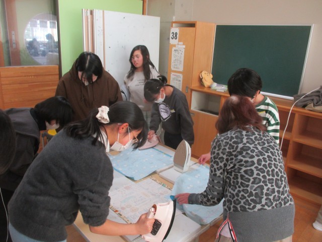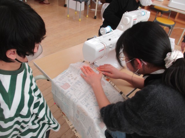 家庭科の学習では、ミシンでランチョンマットの作製に挑戦しています。地域の方のサポートも借りながら、アイロンを丁寧にかけたり、ミシンで布を縫ったりしました。できることがどんどん増えています。