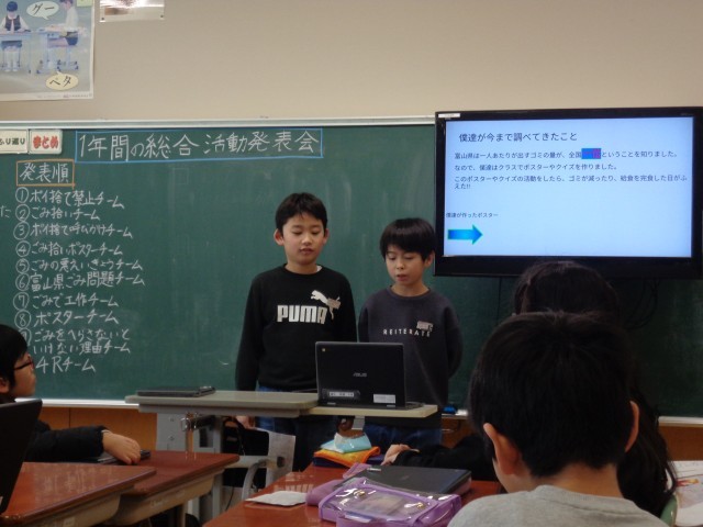 土曜日の学習参観では、総合的な学習の時間の活動のまとめを発表しました。