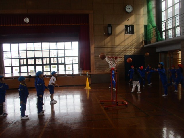 体育の学習では、ポートボールをしています。3年生の時とは違い、ゴール代わりの味方ではなく実際にゴールにめがけてシュートしたり、柔らかいボールではなくバスケットボールを使ったりするなど、3年生の時からレベルアップしたポートボールに、苦戦しながらも楽しんでチャレンジしている様子が見られました。