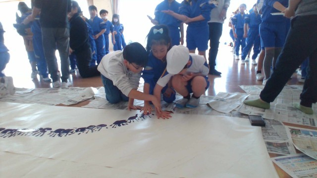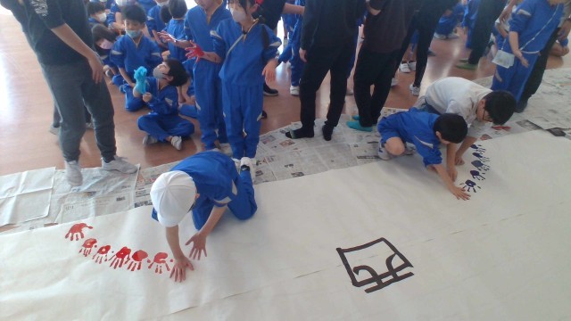 今日は6年生が企画した卒業プロジェクトに参加しました。6年生に助けられながら、しっかりと手形の虹をかけることができました。