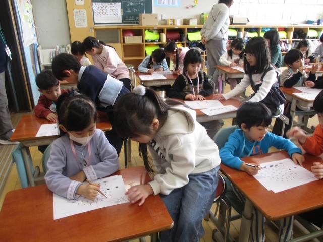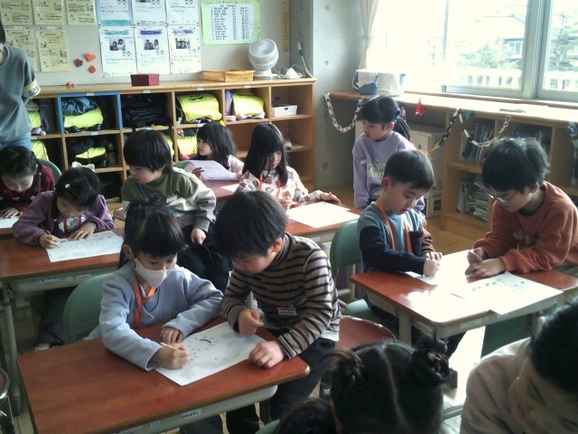 西田地方保育園の年長さんが、小学校に遊びに来てくださいました。子供たちは、「だるまさんが転んだ」で一緒に遊んだり、点つなぎやひらがなクイズを行う「学校ミニ体験」等の活動を行いました。本番では、司会や説明を全て子供たちで行いました。園児の子達に優しく話しかけたり、丁寧に教えてあげたりする姿が見られ、1年間の成長を感じました。また、今日まで朝や休み時間、家でも練習や準備を頑張ってきた子供たち。年長さんのために、一生懸命に取り組む姿は、とても頼もしかったです。