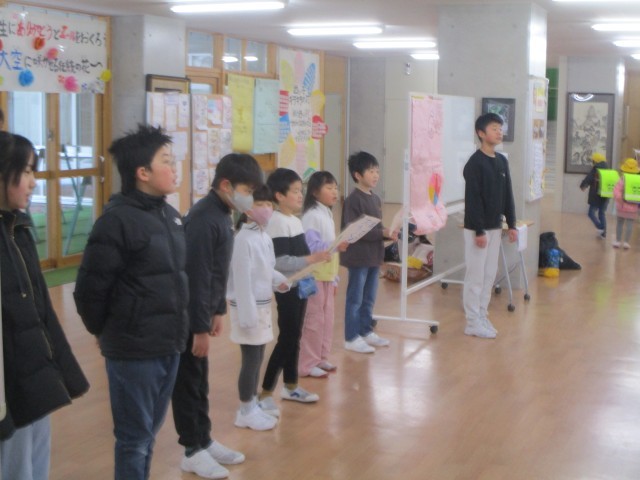 あいさつアンバサダーという企画に参加しました。運営委員会の5、6年生と一緒に各クラスの代表が西っ子に向けて元気に挨拶を行いました。