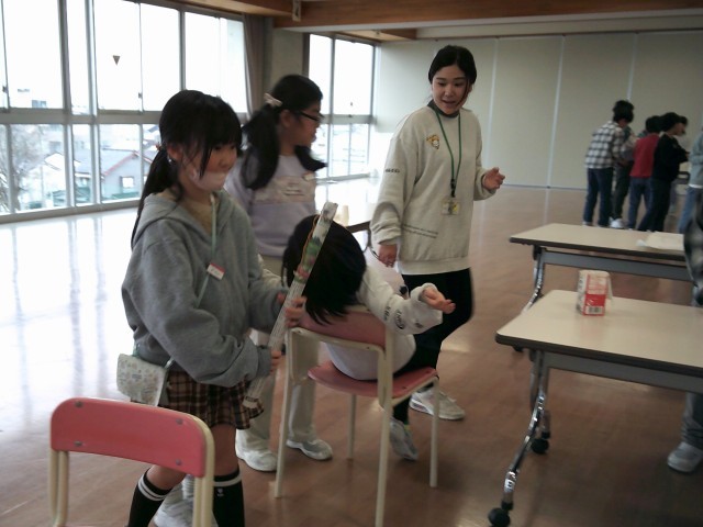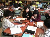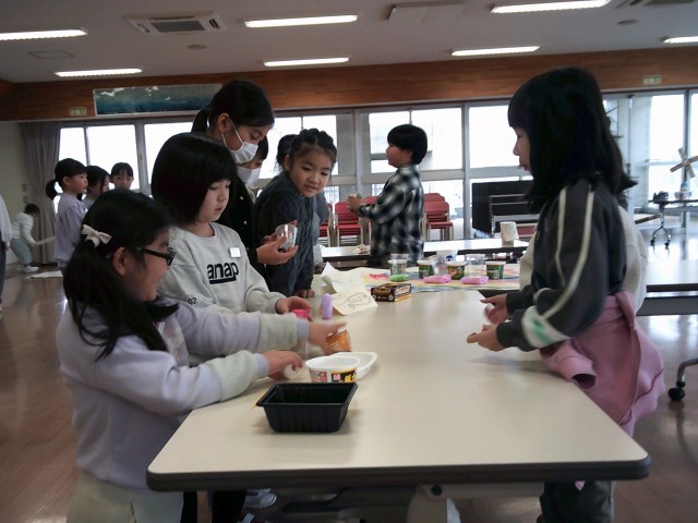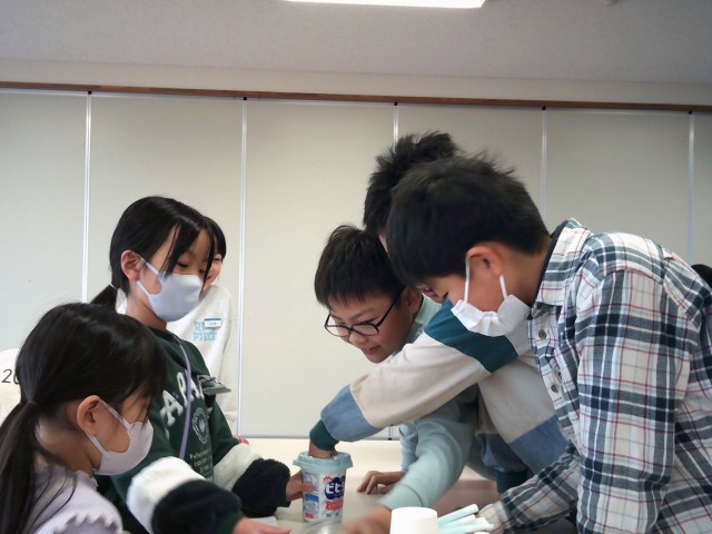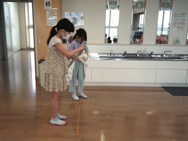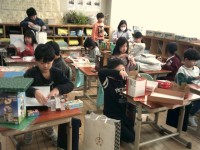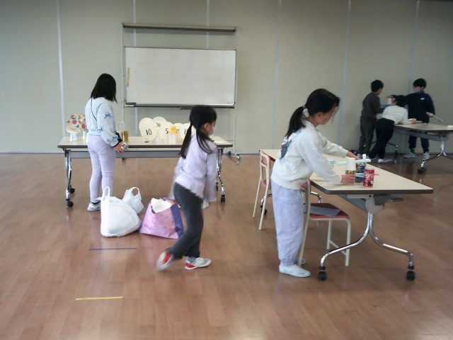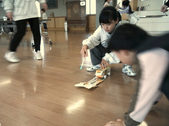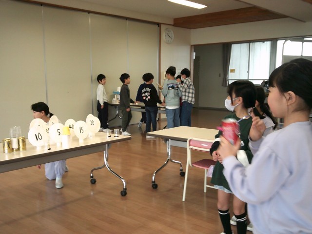 1組では、話合いの結果、「動くおもちゃ」の学習のまとめとして、昨年度招待してくれた3年生にお礼も兼ねて、自分たちの作ったおもちゃを楽しんでもらう「おもちゃランド」をしようということになりました。今日は3年2組を招いて、自分たちの作ったおもちゃで遊んでもらいました。遊び方の説明をしたり、3年生の楽しむ様子等を見たりして、嬉しい気持ちで振り返っていました。