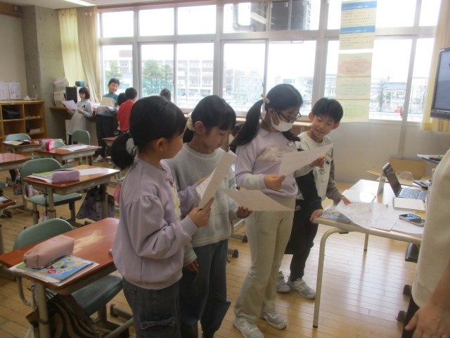 外国語では、「大きなかぶ」の英語劇を練習しています。ALTの先生と発音を確認しながら繰り返し練習していました。