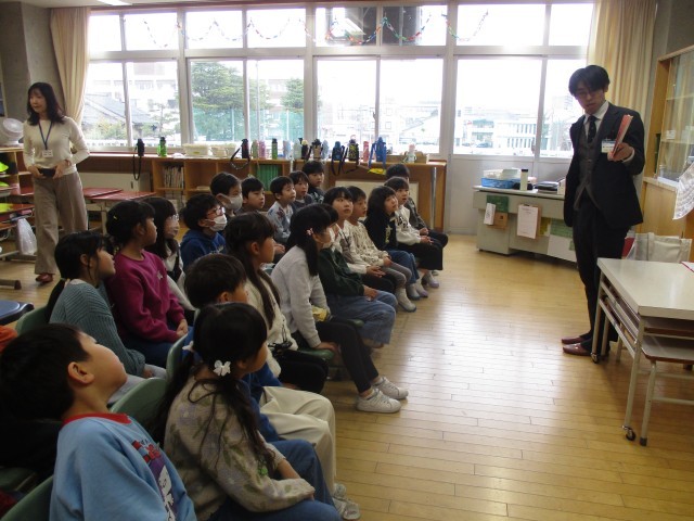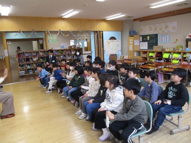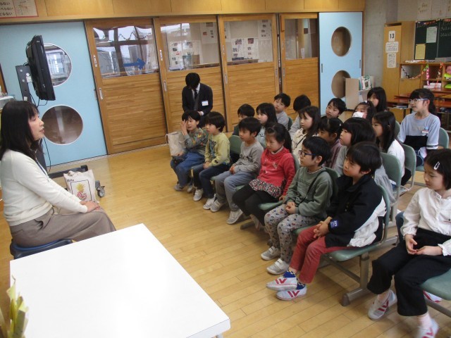 富山市立図書館の司書の方々の学校訪問がありました。絵を見せずに物語を語る読み語りをしてくださったり、図書館にあるおすすめの本を紹介してくださったりして、とても楽しい時間を過ごしました。子供たちの中には、読み語り中に目をつむって物語の様子を想像しながらお話を楽しむ子もいました。