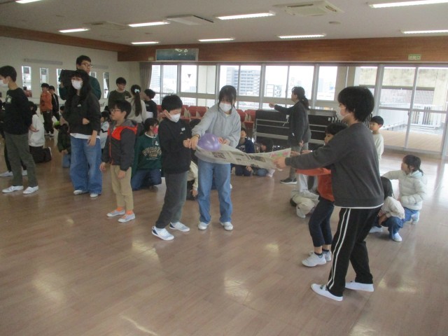 卒業を祝う週間2日目のふれあいプロジェクトでは、2年生と6年生の交流イベント「風船運びゲーム」でした。2年生と6年生で協力しながら、慎重に風船を運ぶ姿が素敵でした。
