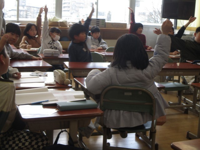 今日は新聞係によるお楽しみ会がありました。新聞係の4人は『新聞クイズ』を企画して、クラスのみんなが楽しめるようにしていました。