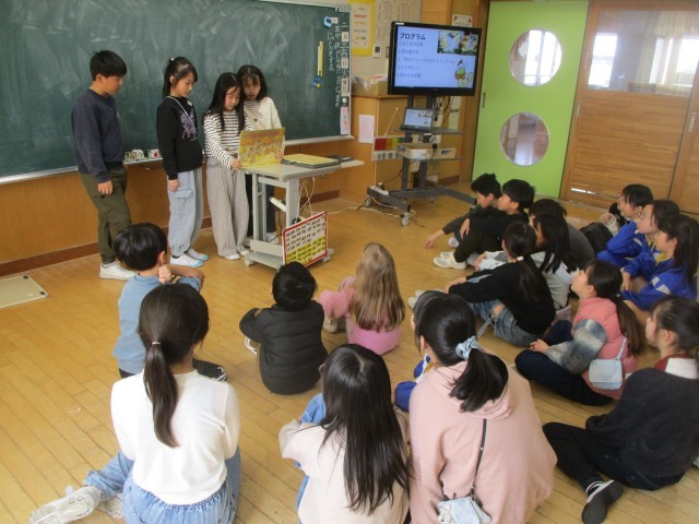 4年2組では、それぞれの会社でクラスがもっと仲良くなるような活動を考え、イベントを開いています。お笑い会社は笑わせ合ってみんなが笑顔になるような大喜利企画、新聞会社は新聞を使った協力ペア遊び、図書会社はクラスのみんなが物語を楽しめる紙芝居を披露するなど、どの会社もよりよいクラスになることを目指して活動していました。