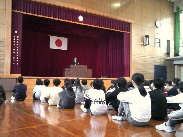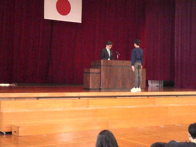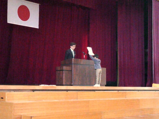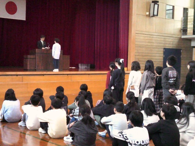 修了式が行われました。各学級の代表者が校長先生より修了証を受け取りました。