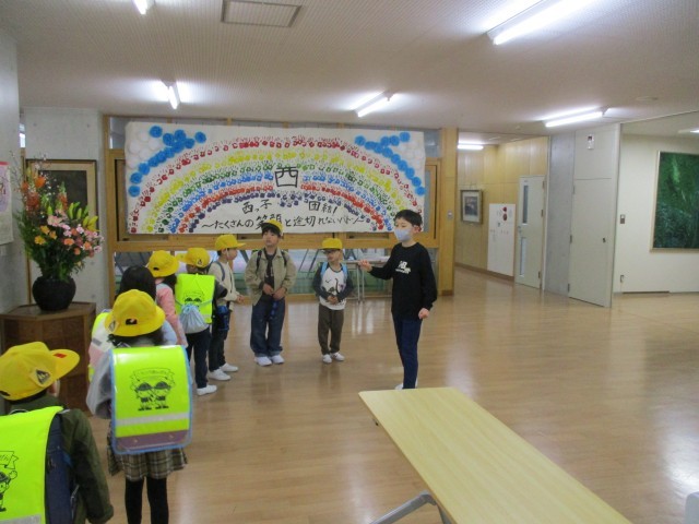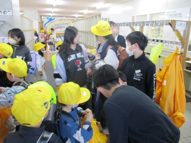 1年生に下足ロッカーの場所を教えたり、教室へ案内したりしました。1年生のために頑張りたいと張り切る6年生でした。