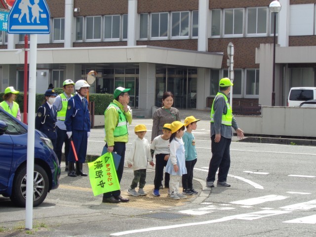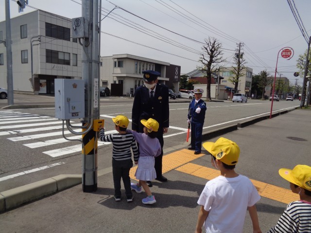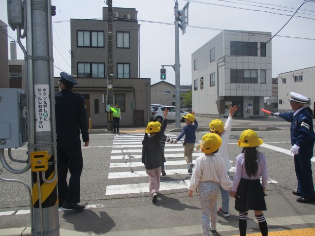 警察署や見守り隊の方から、交差点や横断歩道の正しい渡り方を教えてもらいました。
