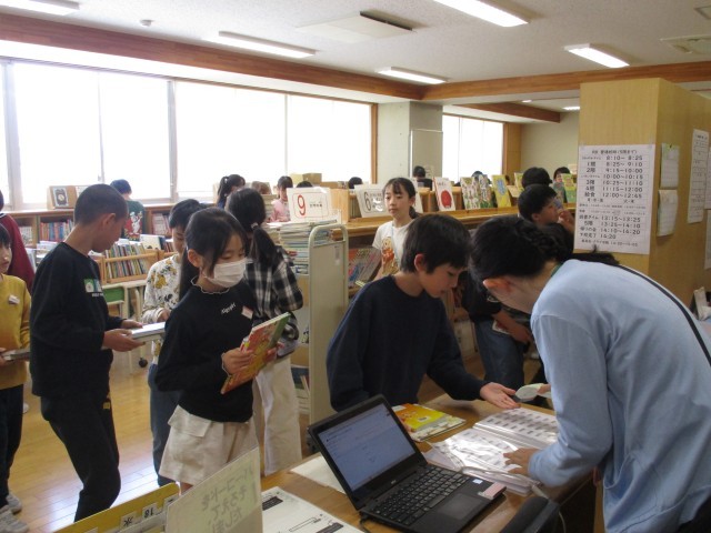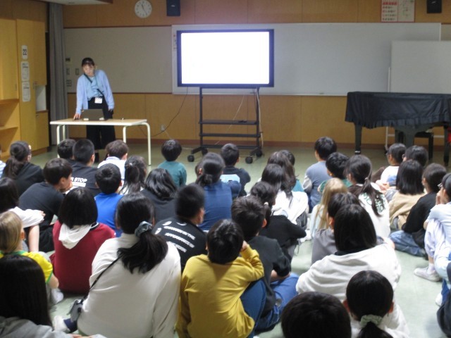 今年度初めての図書室利用の前に、司書の先生から図書室を使うときのルールを改めて教えていただきました。