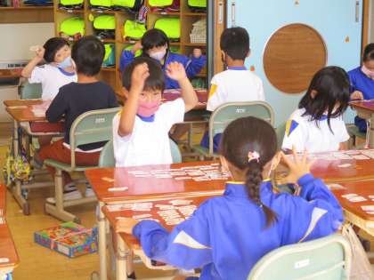 ひき算カードを使って、きまりを見つけたり、ゲームをしたりしました。ゲームでは、選んだカードの計算をしっかり行いながら答えを確かめ、友達と楽しむことができました。