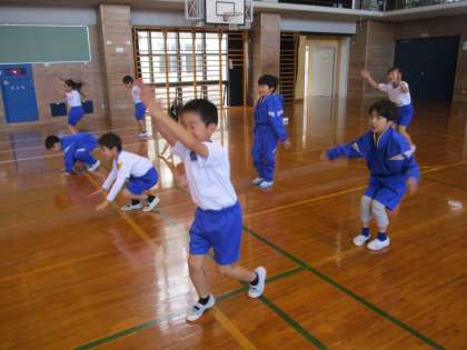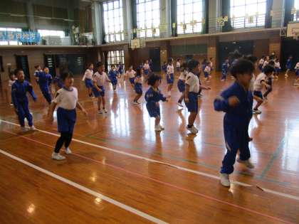 1年生にとっては初めてのダンス教室。みんなドキドキしながら体育館に向かいましたが、あっという間にダンスの楽しさを感じることができたようです。