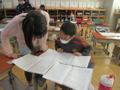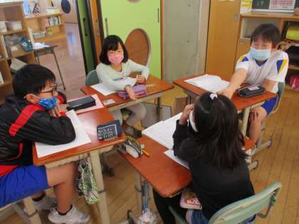 国語の「プラタナスの木」の学習のまとめとして、物語を友達に紹介する文章を書きました。それぞれが書き終えた後、グループになって互いの紹介文を読み合いました。友達の紹介文の魅力に触れ、自分の文章を振り返ったり、さらに読みを深めたりすることができました。