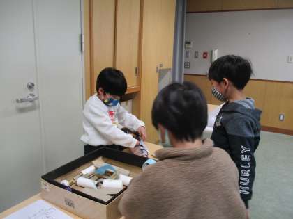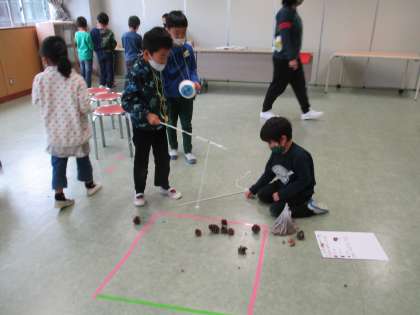 子供たちが楽しみにしていた「秋のおもちゃランド」を行いました。自分の作ったおもちゃで楽しんでもらおうと、意気込んでお店の準備をしていました。