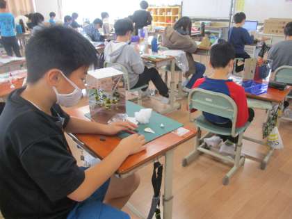 図画工作の時間に、「ミラクル!ミラーステージ」の学習に取り組みました。