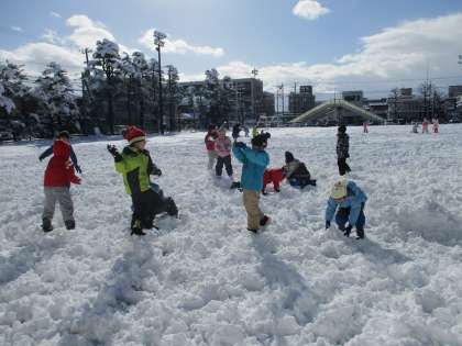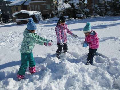 たくさんの雪が降り、グラウンドには真っ白な世界が広がりました。子供たちは、久しぶりの雪あそびを、友達と一緒に思いっきり楽しみました。