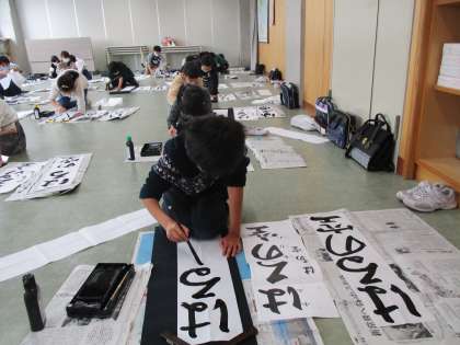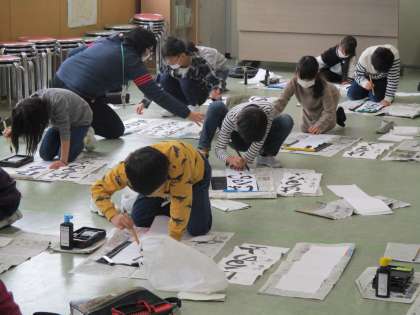 新年が明け、3学期がスタートしました。今日は、書き初め大会。冬休みの練習を発揮する子供たちです。1組の様子です。