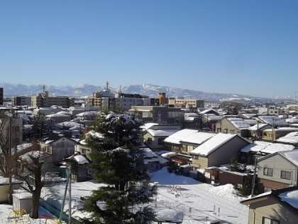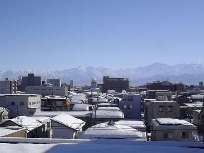 朝はたいへん寒かったのですが、日中はとてもよい天気の1日でした。学校の4階からはこのような冬景色が見えています。雪の積もったグラウンドには子供たちの足跡がいっぱいです。気持ちのよい青空の下、子供たちは楽しく活動していました。