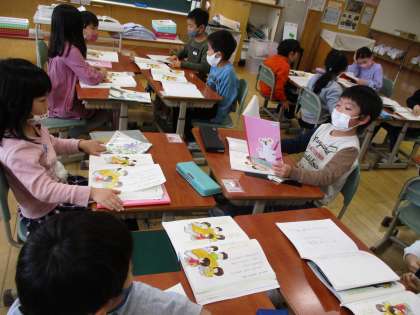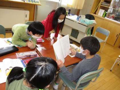 「ききたいな、ともだちのはなし」の学習で、好きな本の紹介をグループ内で発表しました。どんな登場人物が出てくるか、どんなところが面白いのかを話し、友達からの質問にも考えて答えていました。話のやり取りの学習は学期に1度ずつありますが、どんどん上手になってきています。
