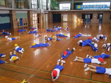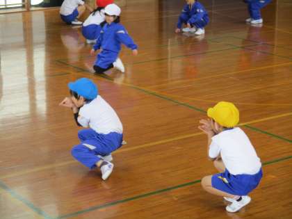 「表現遊び」をしました。体全体を使って表現する学習です。ゾウやワニ、にわとり等の動物を表現したり遊園地の乗り物になったりしながら、最後は喜怒哀楽を表現しました。それぞれに表現の仕方を工夫している様子も見られ、表現遊びの面白さを感じることができていました。
