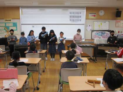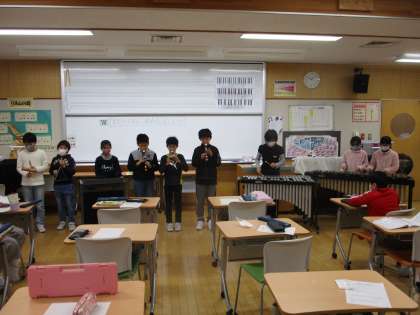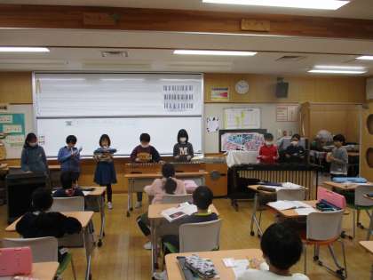 1組も「茶色の小びん」の合奏発表会を行いました。それぞれのグループの音色に個性がありながらも、どれも美しいハーモニーになっていて、みんなの心が一つになっていることが伝わってきました。