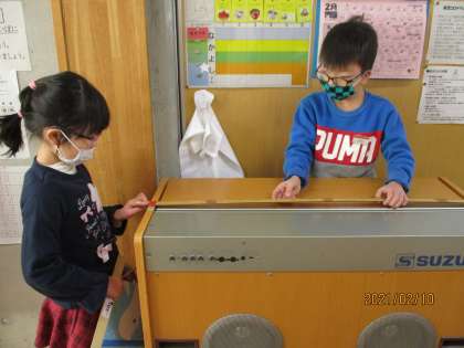 ランドセルロッカーの高さが、ぴったり1mだったことにとても驚いていました。