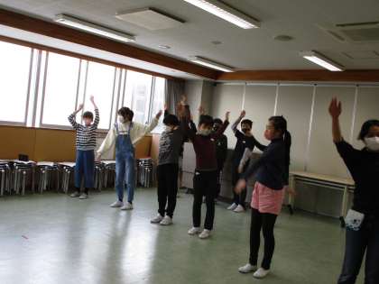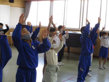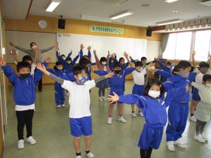2回目の姿勢たいそうがありました。保健委員会の上級生の動きを真似ながら、腕を伸ばしたり体を反ったり、トトロの曲に合わせて楽しく体操しました。慣れてきて「もう終わり?」「楽しかった!」という声も聞かれました。
