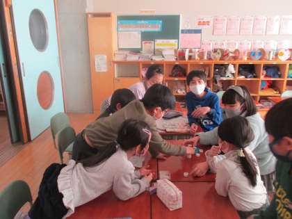 たてわり班であつまって、あなたの心にズームイン集会を楽しみました。ミニ西小ギネスでは、クイズに答えたりペットボトルキャップ積みをしたり、みんなで協力して活動することができました。2年生は1年生を助けたり、上級生の姿から優しくすることを学んだりすることができました。子供たちは、ひさしぶりの集会を思いっきり楽しんでいました。