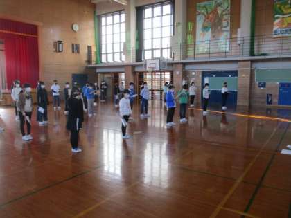 卒業式の合唱練習を体育館で始めています。