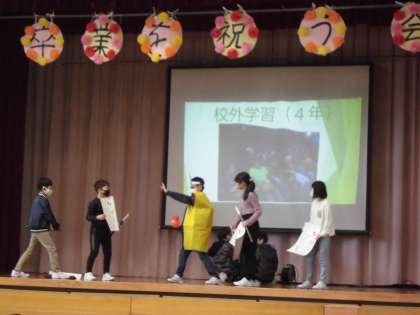 卒業を祝う会で、全校のみんなが6年生に感謝の気持ちを伝えました。6年生にとっては、この集会は最高の思い出の一つになったことと思います。