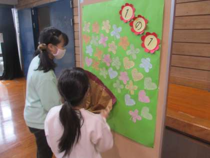体育館には在校生から卒業生へのメッセージが掲示されていました。みんなでのぞき込みながら嬉しそうにしています。