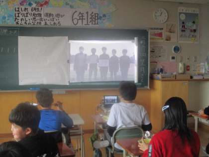 卒業を祝う週間では、毎日給食時間に在校生からのメッセージとこれまでの学習発表会の演技をスクリーンで見ています。「あれは○○さんだ!」「この時ハプニング起きたよね」と、思い出話に花を咲かせています。