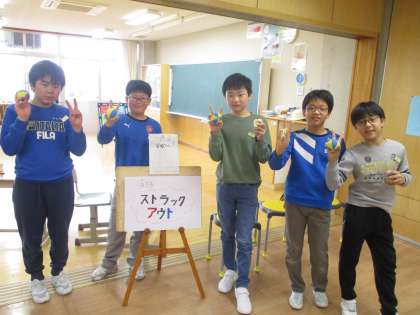 写真はストラックアウトの様子です。的に当てられるように、応援したり、当たったときに一緒に喜んであげたりしていました。