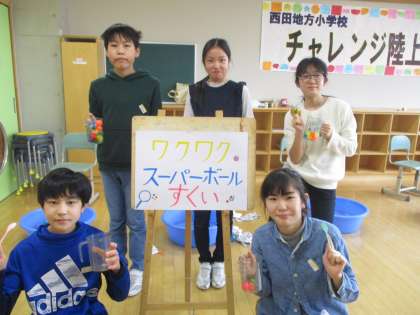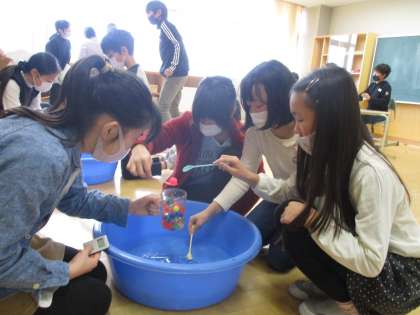 スーパーボールすくいの様子です。小さなスプーンですくうコツをやさしく教えてあげていました。