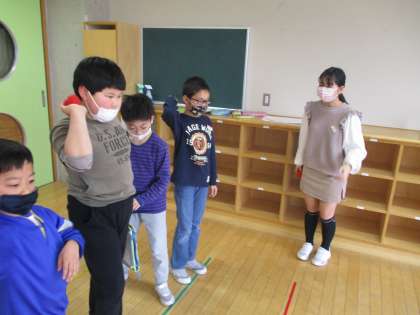 的当ての様子です。学年に応じて距離を変え、難易度を調節していました。