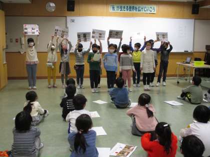 来年度の新1年生を迎える練習をしました。西田地方小学校に安心して通ってもらえるように、どんなことを伝えたらよいか考えて準備してきたことです。また、みんなで作成した動画も観ました。自分たちが出演してクイズを出したり踊ったりしている動画ですが、新1年生のようにノリノリで楽しみながら観ていました。