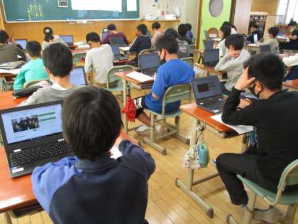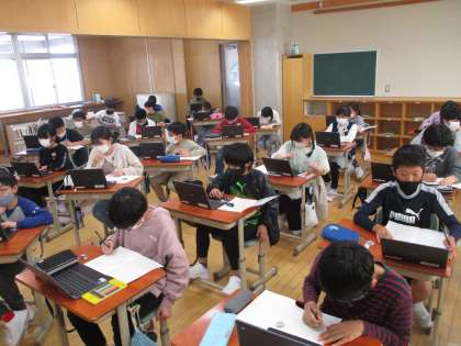 社会科の学習では、一人一端末を活用し、日本国憲法について調べました。