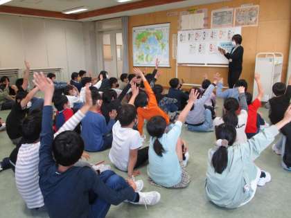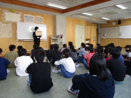 紙芝居を読んでもらったり、十進分類法について学んだりしました。