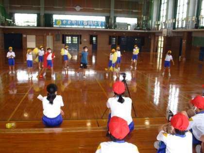 給食時には、撮っておいたビデオを見て、よかったところや今後の改善点について考えました。
