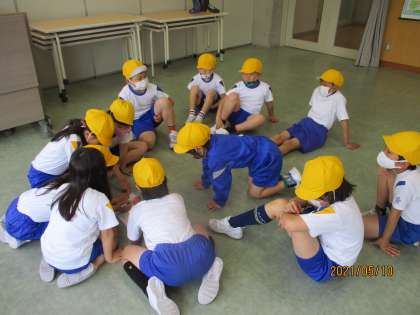 リレーの出走順やタイフーンのグループ分けは全て各団の子どもたちで相談して決めることにしました。なかなかうまく決められず、困った様子もありましたが、粘り強く話合い、オーダーを決定することができました。話合いの段階から心を一つにして団結しようとする姿が見られる場面となりました。