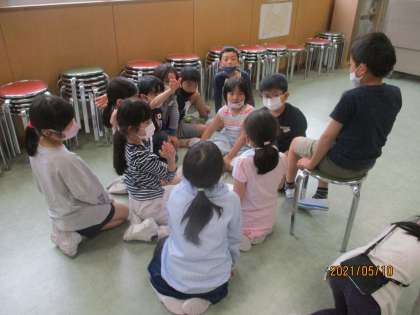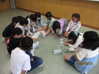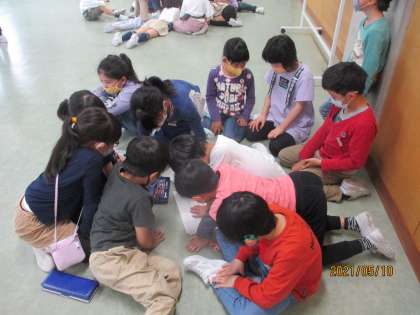 中学年合同練習を終えた3年生は、「作戦を立て直したい」と口々に言い始めました。すぐに視聴覚室に集まり、色団ごとに臨時のミーティングを開催することになりました。オーダーを変更したり、走り方や並び方を工夫したりするなど、活発な意見交換が行われていました。