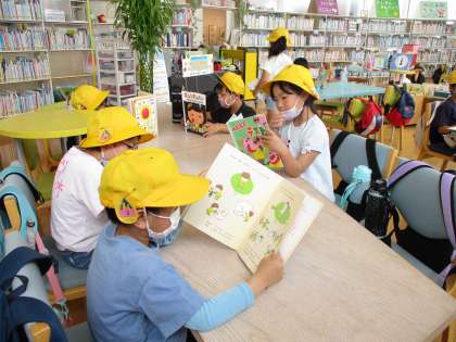 大島絵本館では、シアターで絵本DVDを視聴したり、ライブラリーで絵本を読んだりしました。学校の図書室にはない特別な絵本もあり、いろいろなお話の世界を味わうことができました。